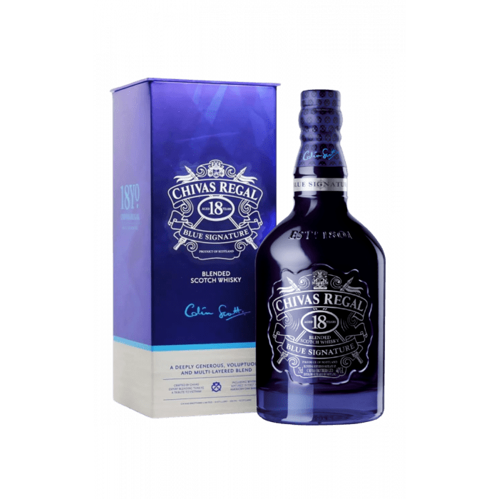 Rượu Chivas 18 Xanh Blue được pha trộn từ hơn 20 loại whisky đơn (single malt) từ các vùng nổi tiếng của Scotland, đảm bảo mỗi giọt rượu đều có độ trưởng thành tuyệt vời và hương vị độc đáo. Quá trình ủ trong các thùng gỗ sồi chất lượng cao giúp tăng cường hương vị, mang đến sự phức hợp đặc trưng của whisky Chivas Regal.